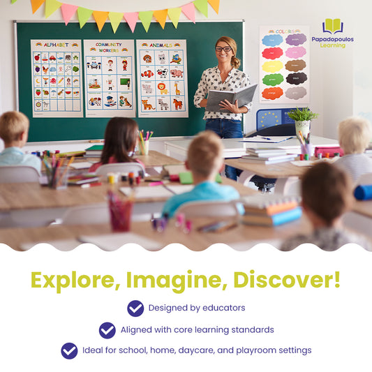 Papadopoulos Learning | Educational Posters for Classroom | Kindergarten Must Haves | Preschool Wall Decor | Teacher Posters | Pre K Learning Activities | ABC Chart for Toddler | Emotions Chart | Homeschool Material | Circle Time Learning Center